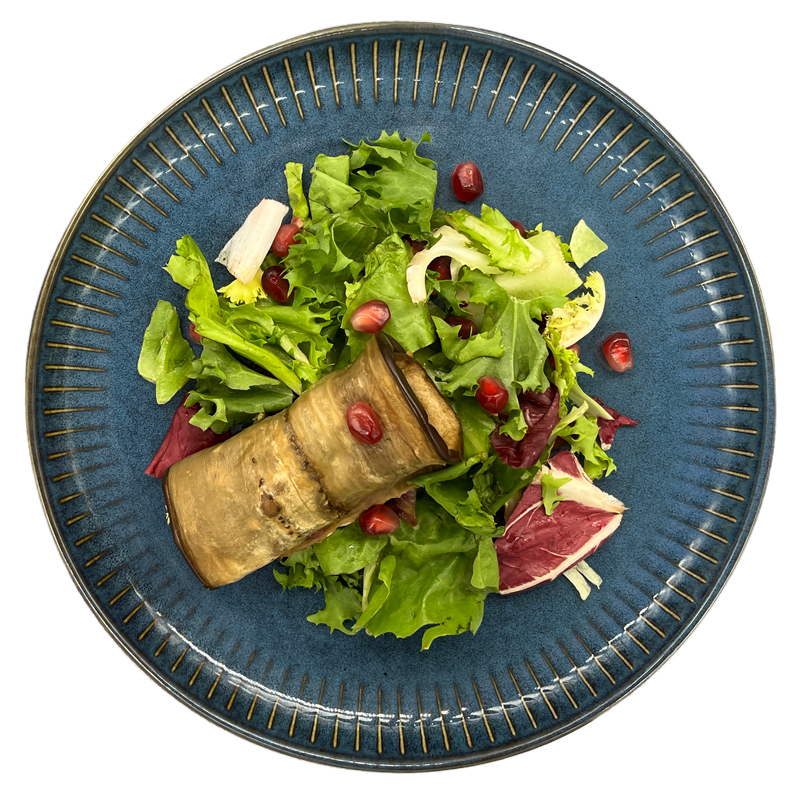 Badridżani - gruzińskie roladki z bakłażana z pastą z orzecha włoskiego, kolendrą i granatem