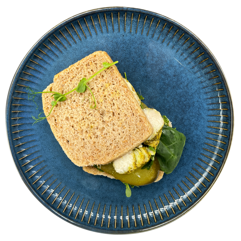 Kanapki z pieczywa graham z serkiem wiejskim i szczypiorkiem.